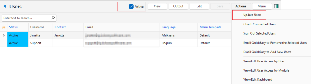 This action removes inactive users and adds active users. After updating, the checkbox to only show Active users is automatically unchecked.