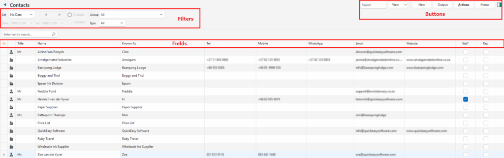 QuickEasy BOS allows users to create an address book of all their Staff, Customers, Suppliers and other contacts. This address book is named Contacts.