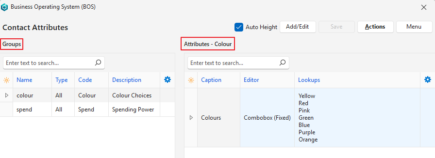 - Navigate to Edit Attributes (e.g. Main Menu > Setup > Contacts > Menu (button) > Edit Attributes).