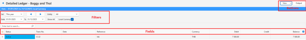 - The filters for the detailed ledger are identical to those for the age analysis.