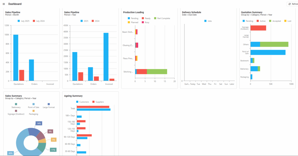 - The Delivery Schedule provides a visual representation of the jobs that are due this week.