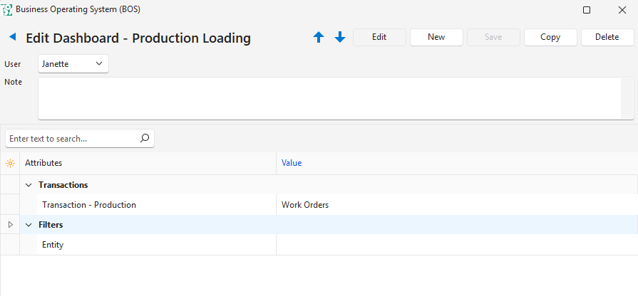 Transaction – Production | A dropdown list of all the created Transaction Types for users to select the one they use for production (e.g. work orders). |