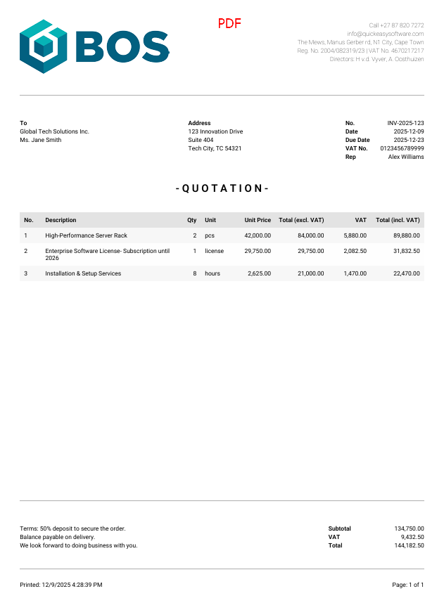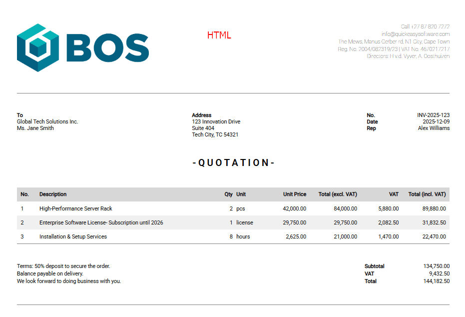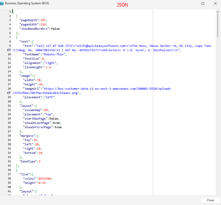 The BOS Document Designer is a flexible designer that allows organisations to create and customise their own forms such as invoices and quotations. These forms can be output in JSON, HTML or PDF.