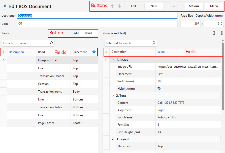BOS Document Designer Interface