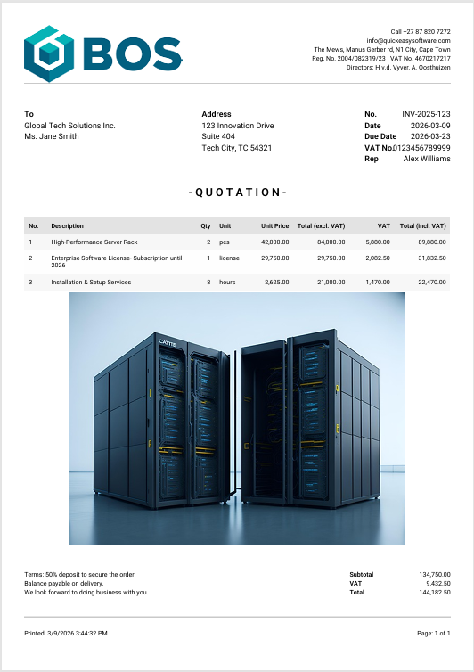 - Description = Type a description for the document (e.g. Quotation).