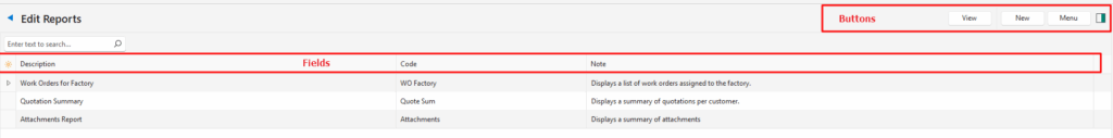 Code | A field to type a short description for the report. |