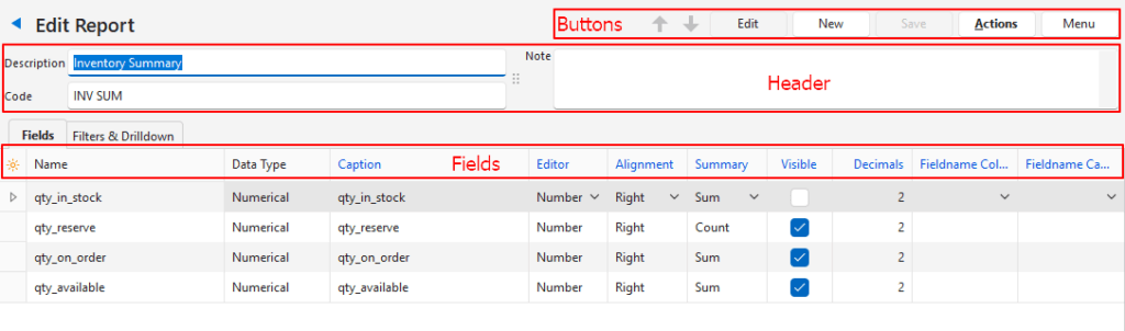 - The fields are automatically generated based on the report’s SQL query.
