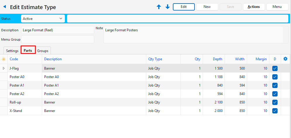 Below is an example of an Estimate Type to quote on Large Format Printing products.
