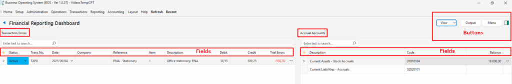 Menu | Views – Dashboard – Statement of Profit/Loss – Statement of Financial Position – Trial Balance Settings – User Access – Edit Accounting (VAT Types, Currencies, Credit Terms, Accounts) Layout |