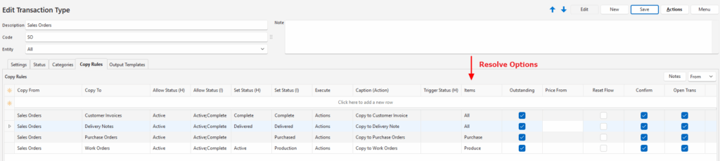 - Resolve options also assist with copying transactions and ensure that items are copied to the applicable transactions.