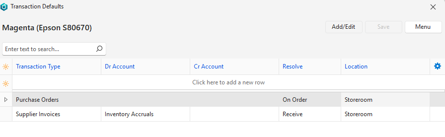- Defaults can be set for all the transaction types, or only those that post to the ledger to ensure the correct ledger accounts are debited and credited.