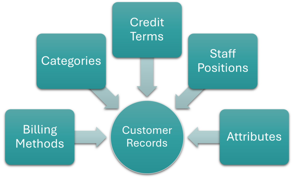 | Positions | Positions allow you to identify the people working for customers (e.g. Accounts, Rep, CEO). The same positions are used for customers and suppliers. Positions: Step-by-step instructions for creating positions. |