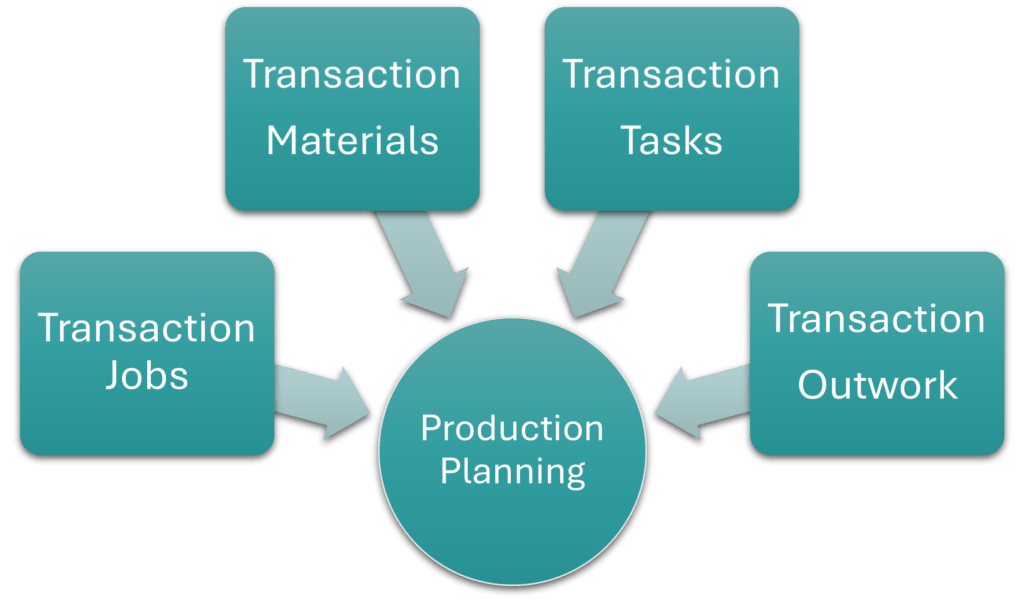 | Production Planning | Production Planning is integrated with transactions such as Work Orders and provides detailed interfaces to manage all aspect of production. Production Planning Setup: Explains how production planning works and provides step-by-step instructions for setting it up. Production Planning Jobs: Explains the fields, buttons, and available features for viewing a list of jobs and provides step-by-step instructions for using the features. Production Planning Materials: Explains the fields, buttons, and available features for viewing a list of materials and provides step-by-step instructions for using the features. Production Planning Tasks: Explains the fields, buttons, and available features for viewing a list of tasks and provides step-by-step instructions for using the features. Production Planning Outwork: Explains the fields, buttons, and available features for viewing a list of outwork and provides step-by-step instructions for using the features. Production Planning FAQ and Troubleshooting: Answers frequently asked questions on Production Planning. |