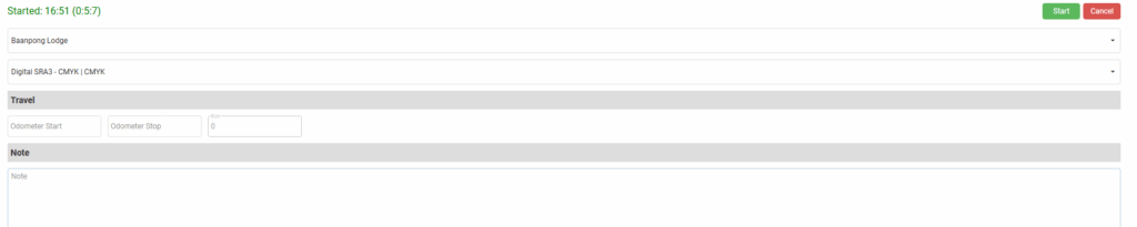 Start (button) top right | Timekeeping is started when the form is opened. Once the Start (button) is clicked the form and the mobile app can be closed. The timekeeping will continue. |