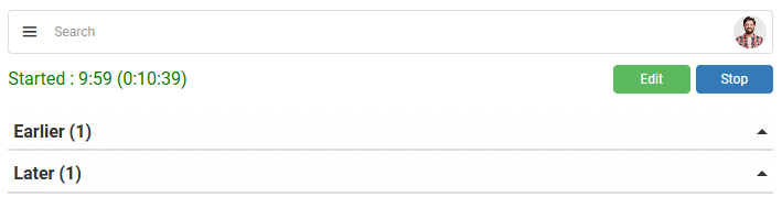 Edit (button) top right | Displayed when a Timekeeping record is active. Allows the record to be edited without stopping the timekeeping. |