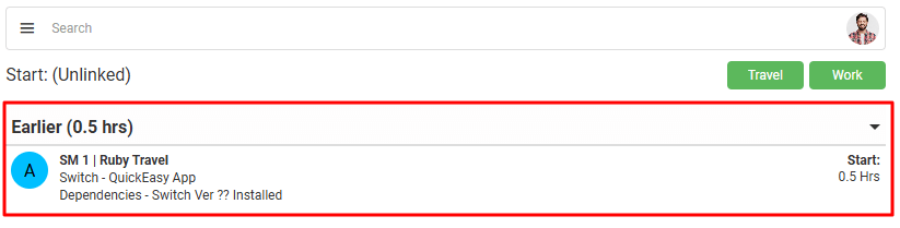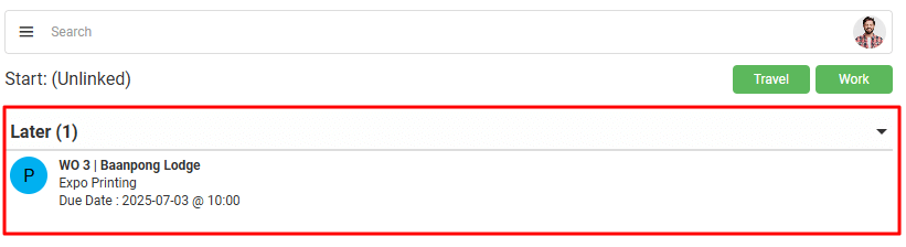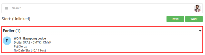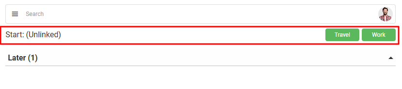 Users can start an unlinked Timekeeping record by clicking either the Work or Travel buttons on the Timekeeping interface.