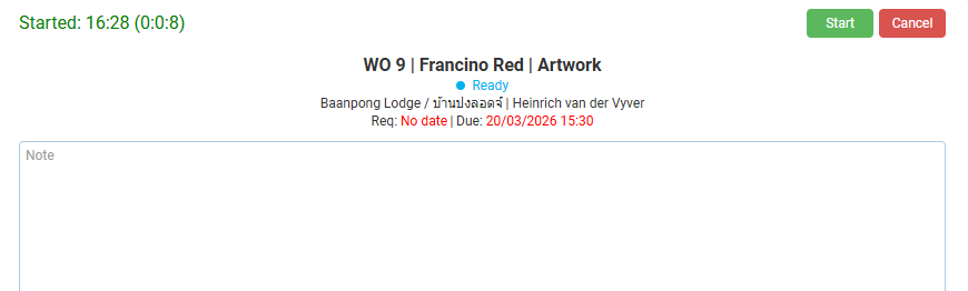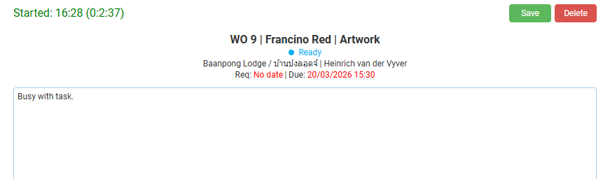 | Requirements | Production is enabled under the Transaction Type’s setting: Estimating > Enable Estimating. The user must be the operator who is selected under the applicable transaction (e.g. Work Order) > Production > Tasks > Operator (column). Users appear on the Operator dropdown list if they are added as staff on the Cost Centre’s Staff tab. The Transaction must be Active. The Task must be Active. |