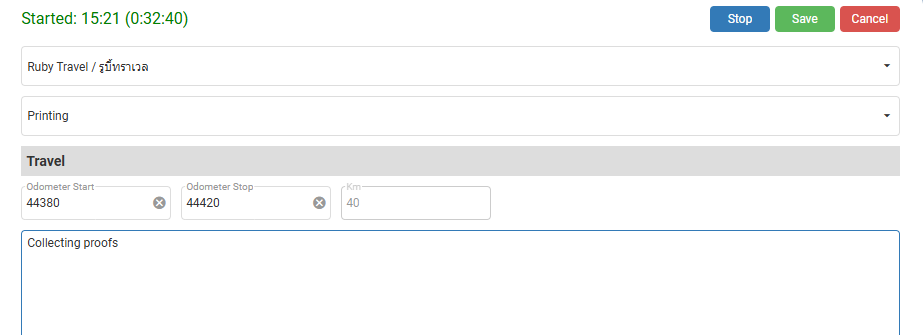 | Start Travel | Starts a travel timekeeping record for the task or transaction. |