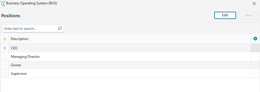 Navigation: Main Menu > Contacts/Entities/Customers/Suppliers > Menu (button) > Edit Positions