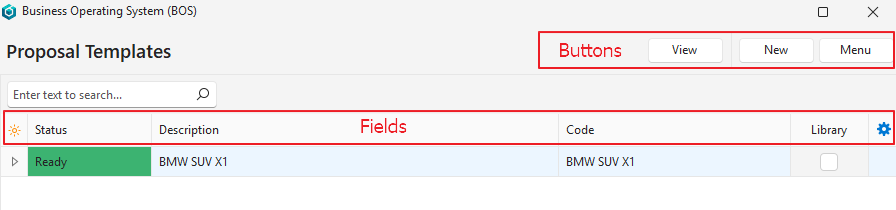 | Code | A field to enter the proposal template’s abbreviated name. |
