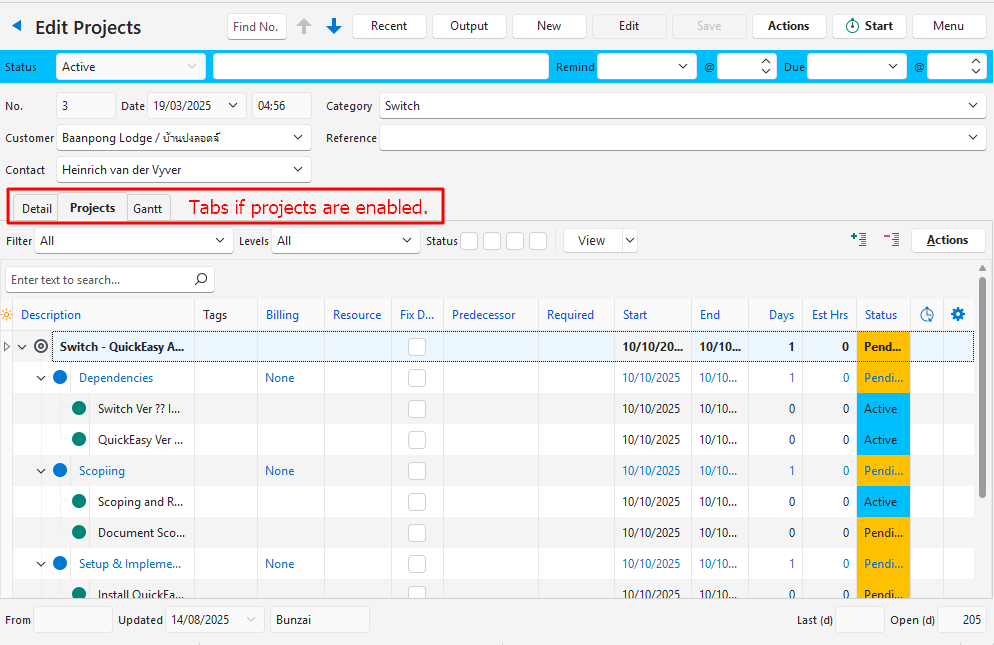 The Service Manager in QuickEasy BOS can also be used to track and follow up on leads and to manage Projects.