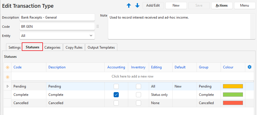 - However, there are only four Status Groups (Pending, Active, Complete, and Cancelled).