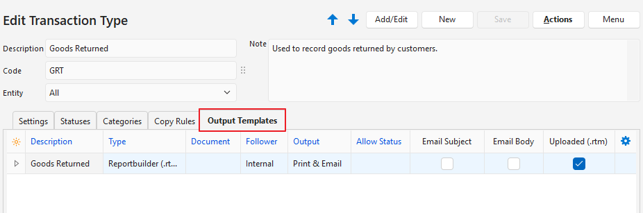- Output templates are the forms you need to print, preview or email a transaction (e.g. invoices).