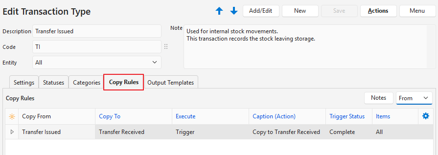 - Although there are two transactions involved in the copy, you only need to create one copy rule.