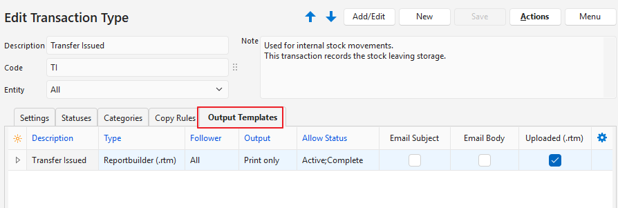 - Output templates are the forms you need to print, preview or email a transaction (e.g. invoices).