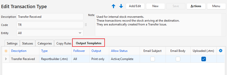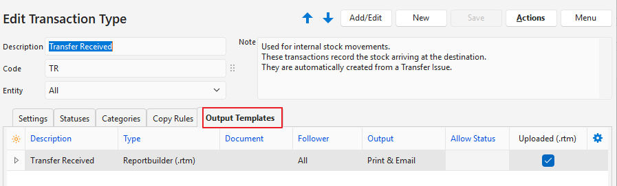 - Output templates are the forms you need to print, preview or email a transaction (e.g. invoices).