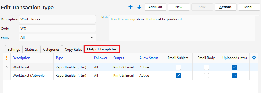Output Templates (tab)