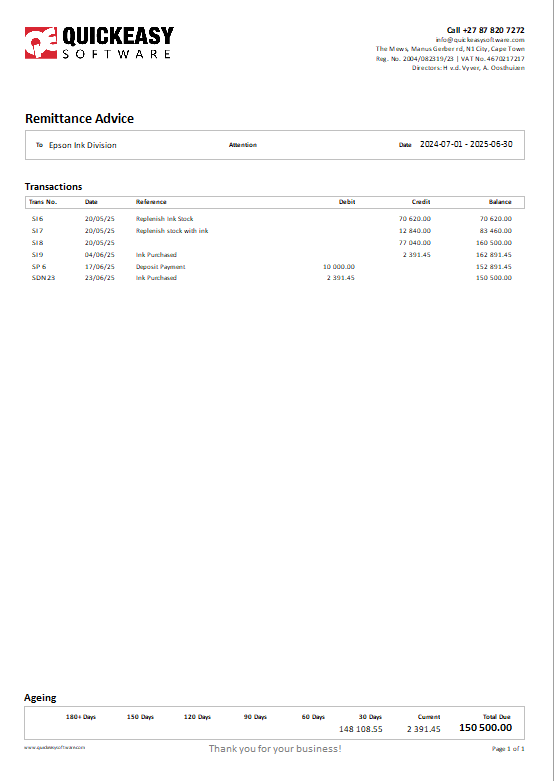 Supplier Age Analysis, Remittance Advices, and Ledger