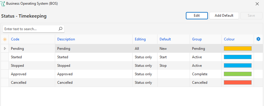 These tutorials explain how to create and edit Statuses for timekeeping.