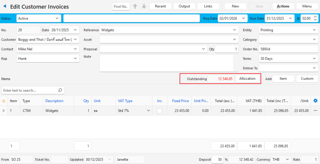 In QuickEasy BOS the allocations can be managed from any linked transaction (e.g. from the invoice or from the customer receipt).