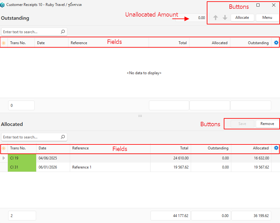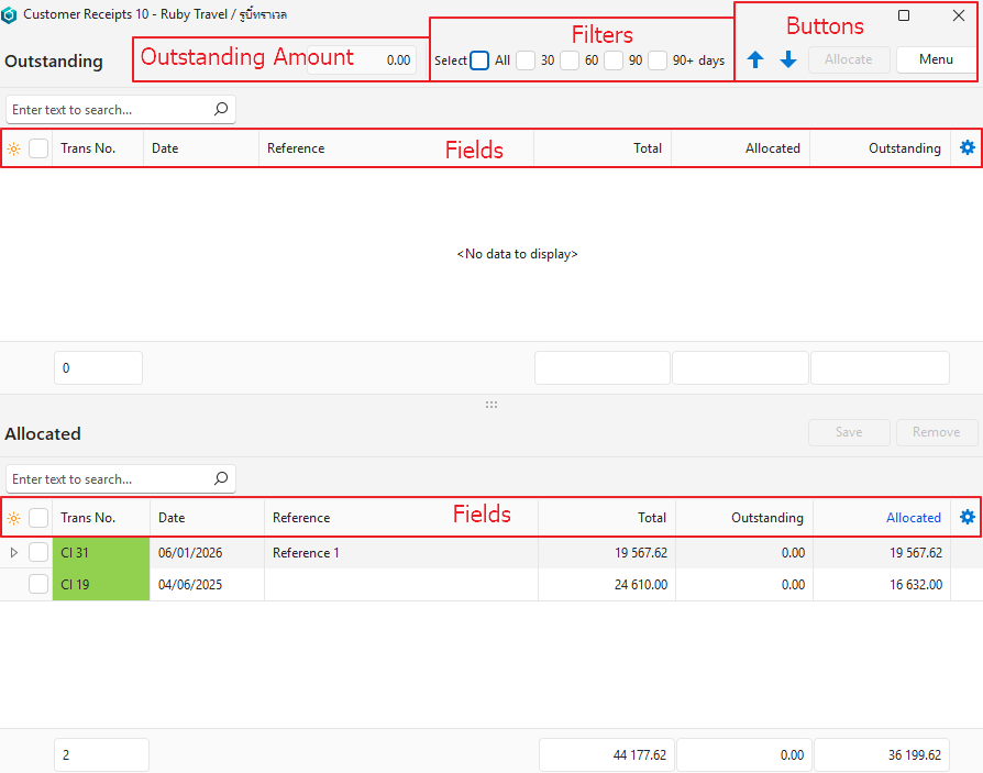 - Outstanding: Indicates the amount that has not been allocated.