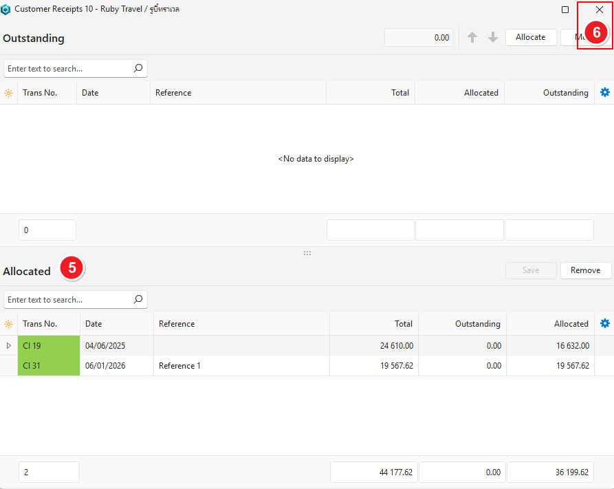 - Click Allocate (button) > Allocate and Update Transaction Total.