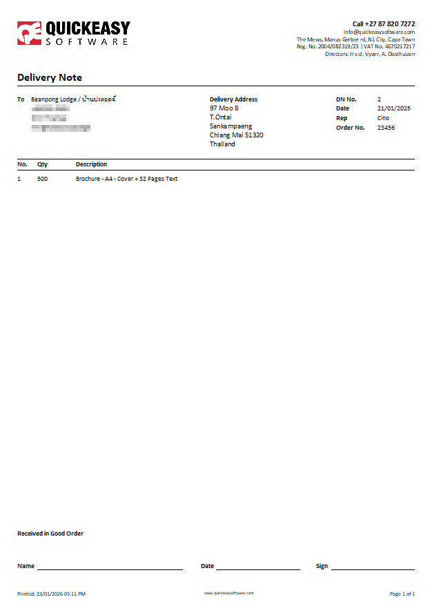 - It it possible to issue a combined invoice and delivery note by including the delivery address on the invoice. The invoice template can also be edited to indicate it is a combined delivery note and tax invoice. In this case, you do not need a transaction type for delivery notes.