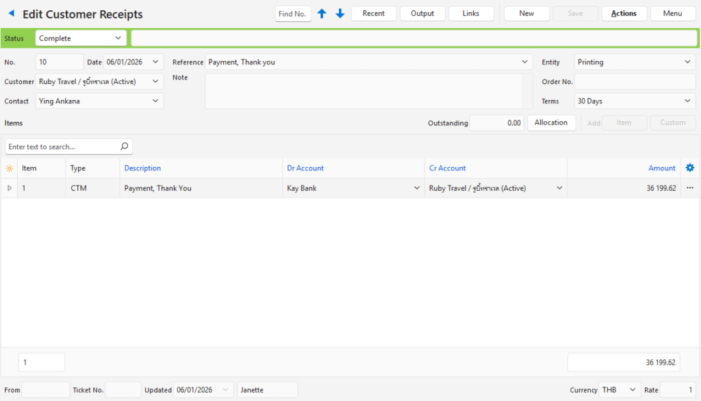 - If you have bank accounts in multiple currencies into which you receive customer receipts, you should create a Customer Receipts transaction type for each currency.