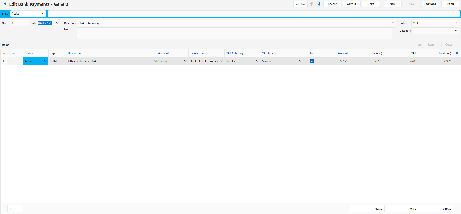 Bank Payments – General
