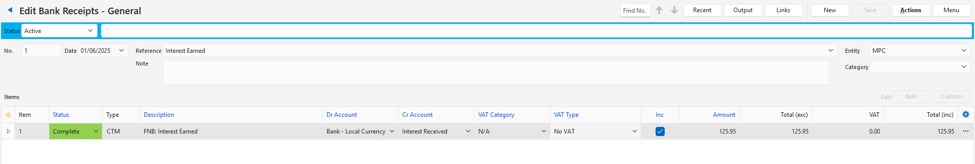 Bank Receipts – General