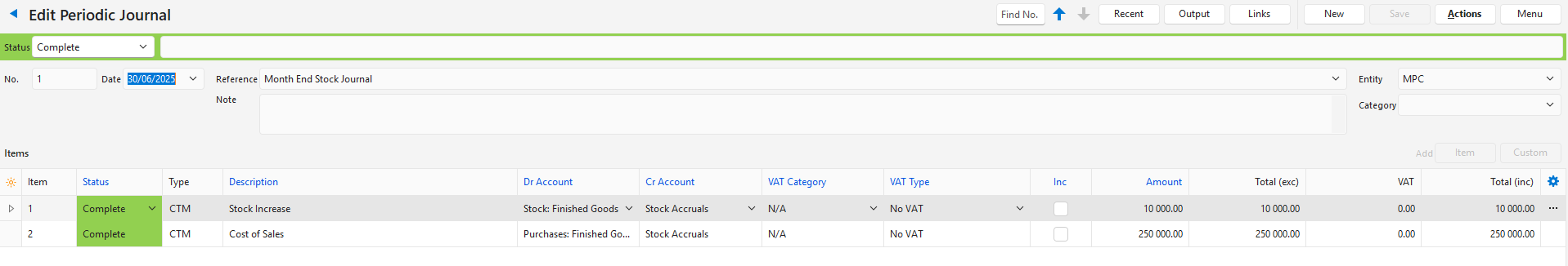 - The Periodic Journal is used to create month-end journals (e.g. to transfer stock on hand to cost of sales).