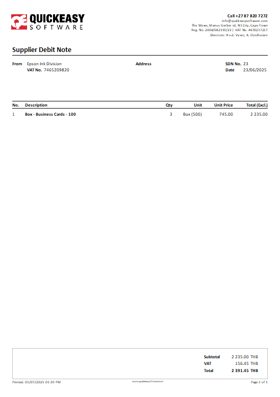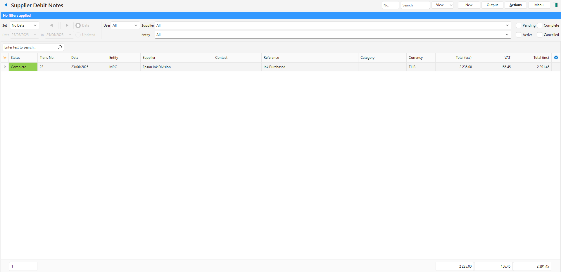 - Supplier Debit Notes are credits received when you have returned goods to your suppliers or queried the price and they agreed on a reduction.