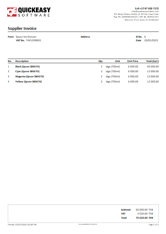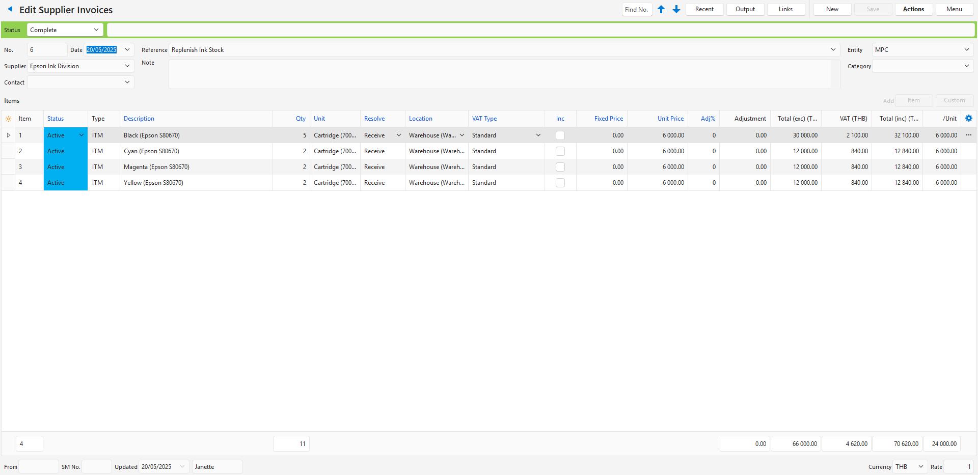- Supplier Invoices can also have custom entries in which case the person creating the transaction must enter the information and prices.