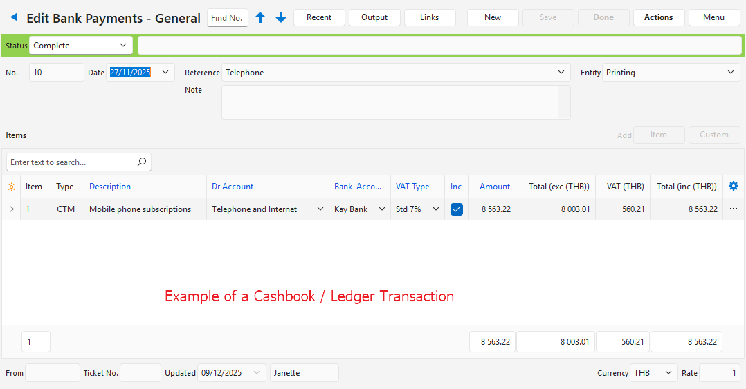 - VAT: Changes the VAT Type and whether the price is entered inclusive or exclusive of VAT.