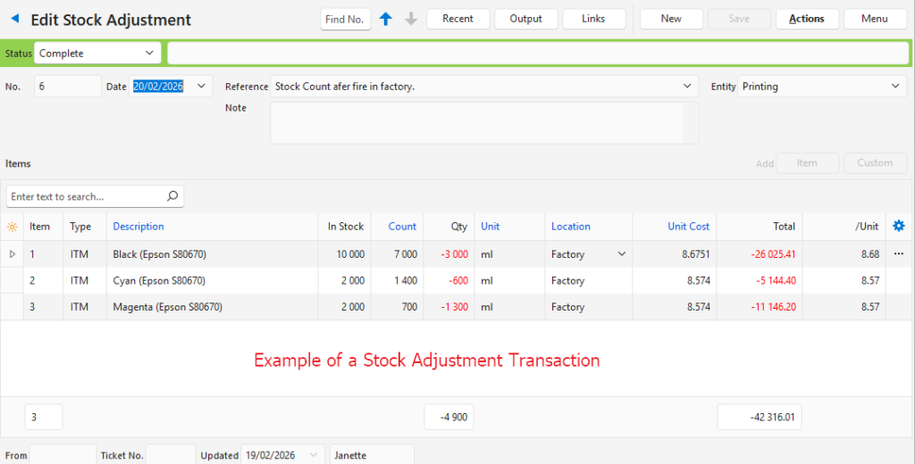 - Update the In Stock Qty: Checks the quantity in stock for transactions or adjustments made and updates all the line items accordingly.