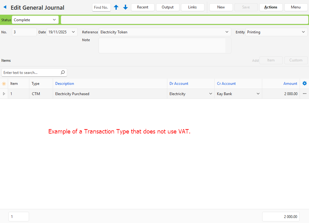 | VAT Type | A dropdown list of VAT Types for users to select one. |