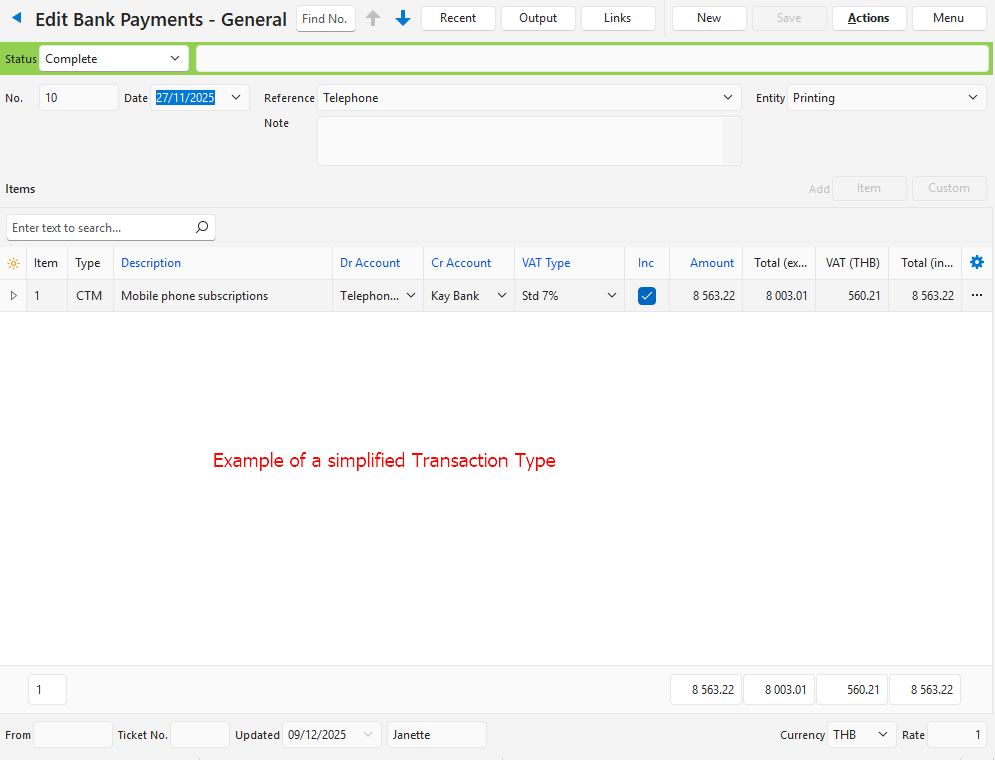 - VAT: Changes the VAT Type and whether the price is entered inclusive or exclusive of VAT.