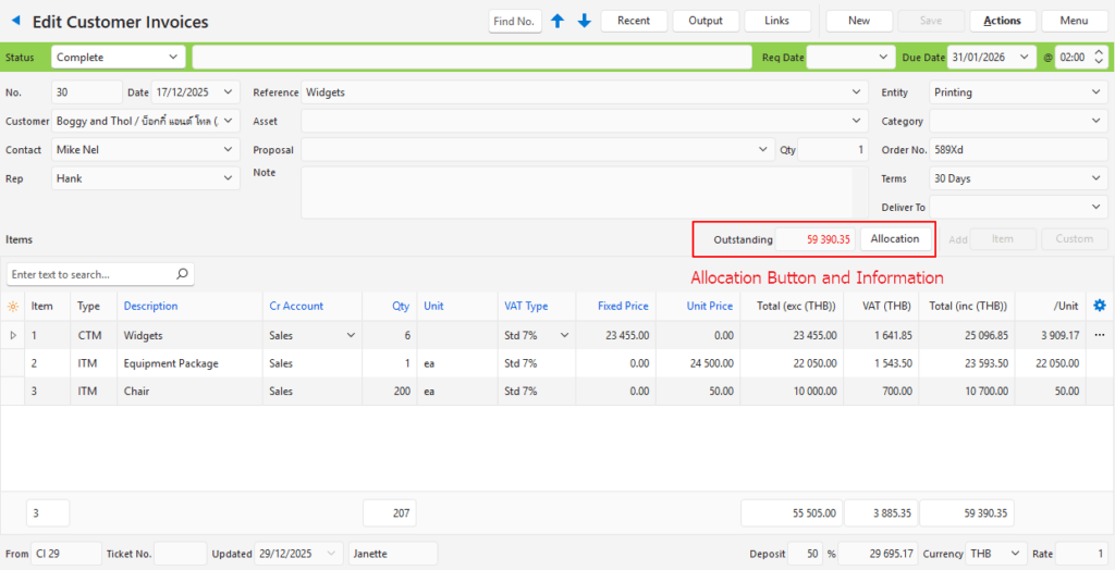 - Allocations allow payments and invoices to be linked to determine which specific invoices are outstanding.