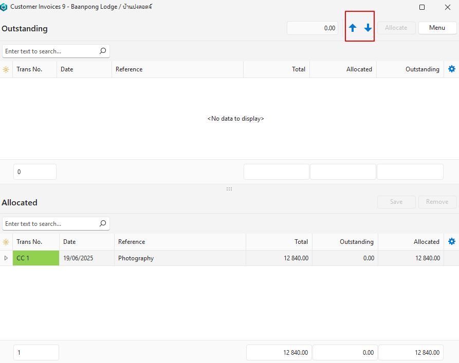 - Use the scroll arrows on the allocation popup to scroll through all the transactions on the list.