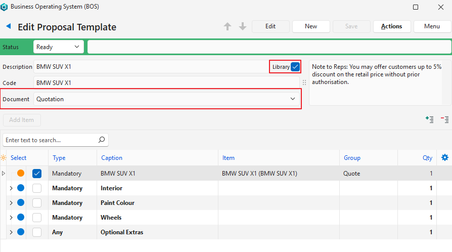 - เอกสารที่เชื่อมโยง (ตัวออกแบบเอกสาร) จะถูกนําเข้าพร้อมกับข้อเสนอด้วย